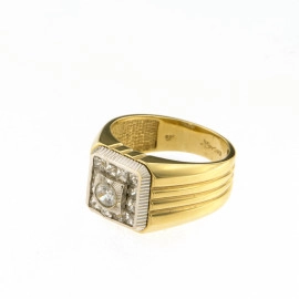 Мъжки пръстен от "Jacklin " в жълто и бяло злато гланц с циркони