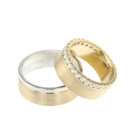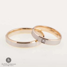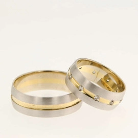 Венчални халки от "Jacklin " в бяло злато гланц и жълто злато мат