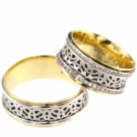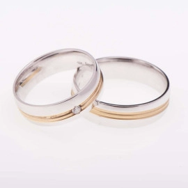 Венчални халки от "Jacklin " в бяло и жълто злато гланц