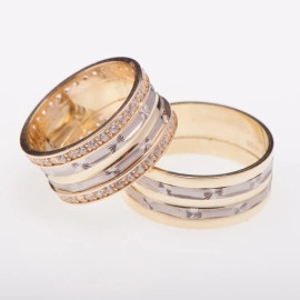Венчални халки от "Jacklin " в жълто и бяло злато гланц с циркони