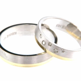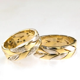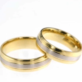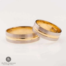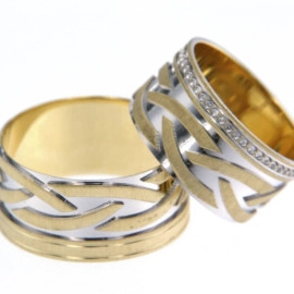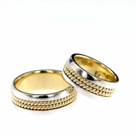 Венчални халки от "Jacklin " в бяло и жълто злато , мат и гланц