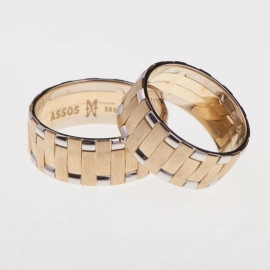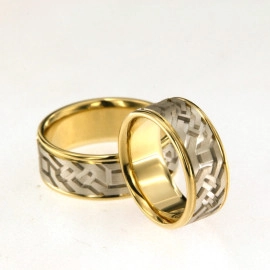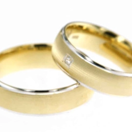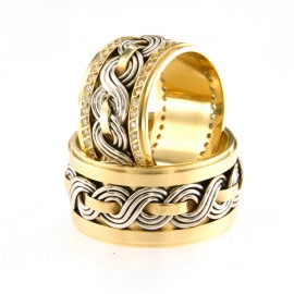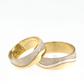 Венчални халки от "Jacklin " в жълто и бяло злато мат и гланц
