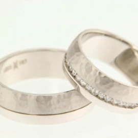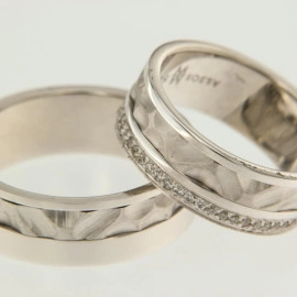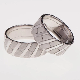 Венчални халки от "Jacklin " в бяло злато с лазерна шлифовка