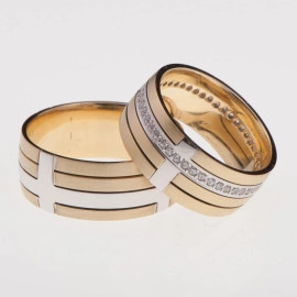 Венчални халки от "Jacklin " в бяло и жълто злато, мат, гланц и циркон