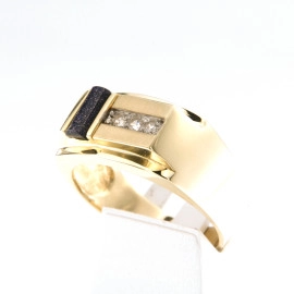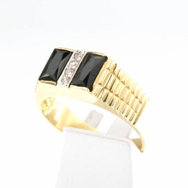 Мъжки пръстен от "Jacklin " в жълто злато с циркони и черен оникс