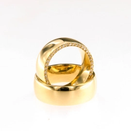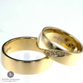 Венчални халки от " Jacklin " в жълто злато, гланц с диаманти