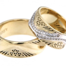 Венчални халки от " Jacklin " в жълто злато , мат и гланц