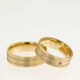 Венчални халки от "Jacklin " в жълто злато с лазерна шлифовка мат и гланц, олекотени