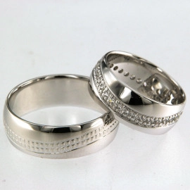 Венчални халки от "Jacklin " в бяло злато с цирконии и лазерна шлифовка
