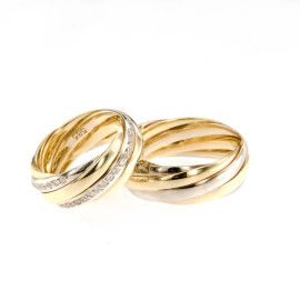 Венчални халки от "Jacklin " в жълто и бяло злато, гланц с цирконии