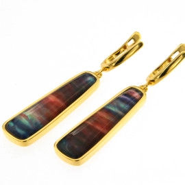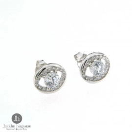 Обеци от "Jacklin " в сребро с цирконии и камък "Котешко око"