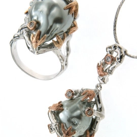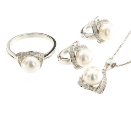 Висулка от "Jacklin " в розово и бяло сребро с циркон и перла