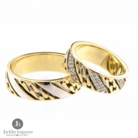Венчални халки от "Jacklin " в жълто и бяло злато мат и гланц с цирконии