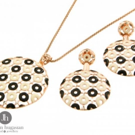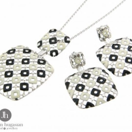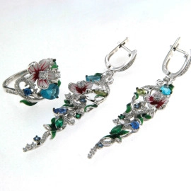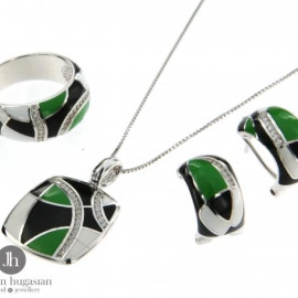 Комплект пръстен, обеци от "Jacklin " в сребро с цветен емайл и лазерна шлифовка