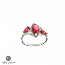 Пръстен от "Jacklin " в сребро с цирконии и червени рубини