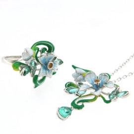 Колие от "Jacklin " в сребро с цветен емайл, изумруд и циркон