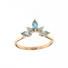 Пръстен от "Jacklin " в розово злато с диаманти и син топаз
