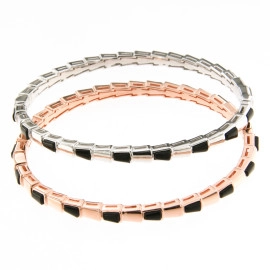 Твърда гривна от "Jacklin " в розово и бяло сребро с черен оникс