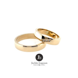 Венчални халки от " Jacklin " в жълто злато с диаманти.