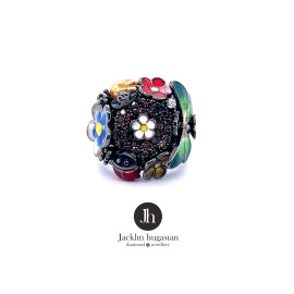 Пръстен от "Jacklin " в сребро с цветен емайл, топази и цирконии .