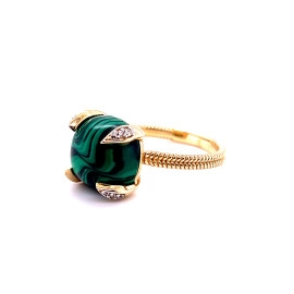 Пръстен от “Jacklin ” в жълто злато с малахит и циркони.