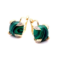 Обеци от " Jacklin " в жълто злато с малахит и циркони
