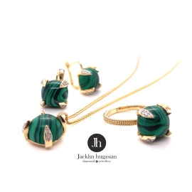 Комплект от “Jacklin ” в жълто злато с малахит и цирконии.