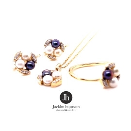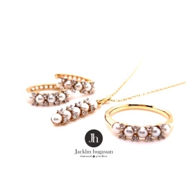 Комплект от “Jacklin ” в жълто злато с перла и цирконии.