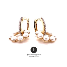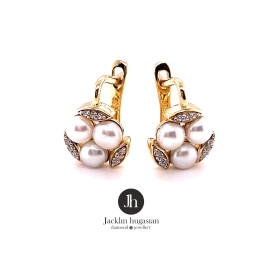 Обеци от " Jacklin " в жълто злато с перли и циркони.