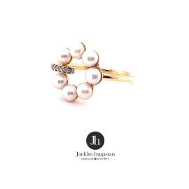Пръстен от “Jacklin ” в жълто злато с перли и циркони
