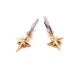 Обеци от “Jacklin ” в жълто и бяло злато гланц ,с циркони.