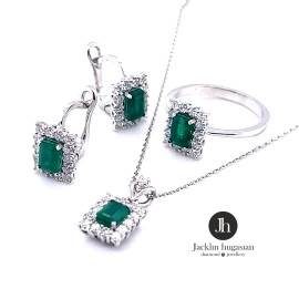 Комплект от “Jacklin ” бяло злато с диаманти и изумруд.