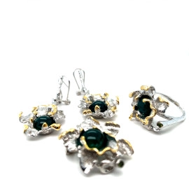 Комплект обеци и пръстен от" Jacklin " в сребро с позлата ,турмалин и перидот