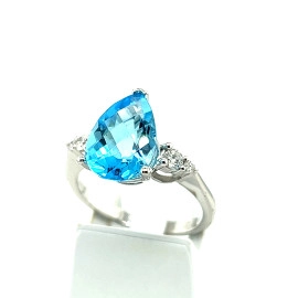 Пръстен от "Jacklin " в бяло злато с диаманти и топаз
