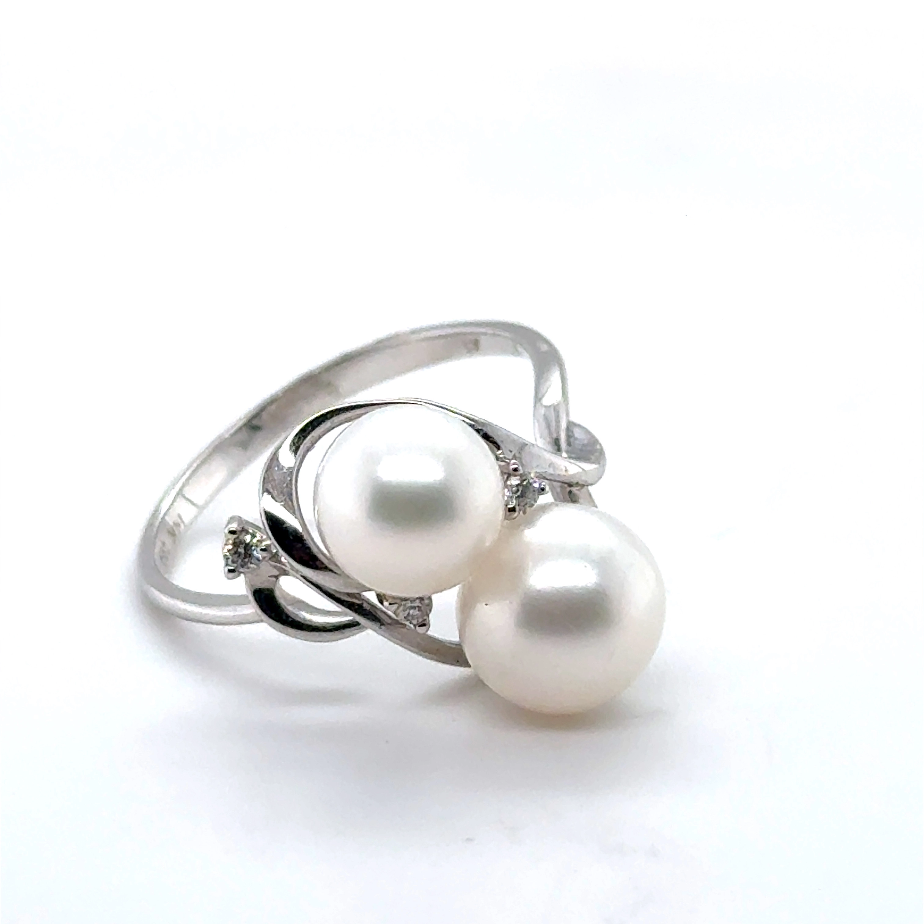 Пръстен от "Jacklin " в бяло злато с перли и диаманти