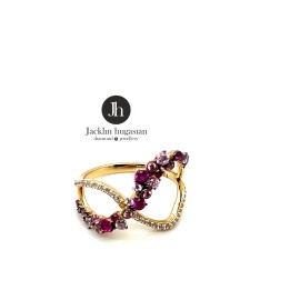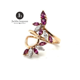 Пръстен от "Jacklin " в розово злато с турмалин и диаманти.