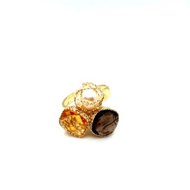 Пръстен от “Jacklin ” в жълто злато с опушен топаз и цирконии