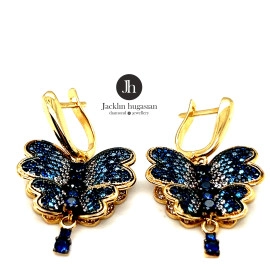 Обеци от “Jacklin ” в жълто злато, със синтетичен сапфир и цирконии