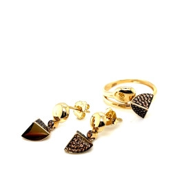 Комплект от “Jacklin ” в жълто злато гланц с цирконии.