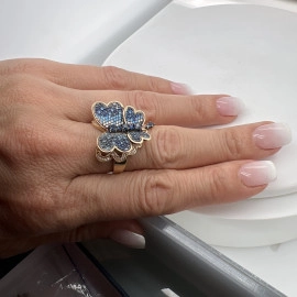 Пръстен от “Jacklin ” в жълто,в бяло и в розово злато с циркони и синтетичен сапфир