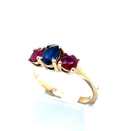 Пръстен от "Jacklin " в жълто злато с рубин и сапфир