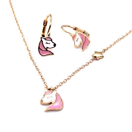 Комплект от "Jacklin " в розово злато със седеф и диаманти.