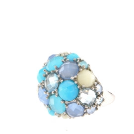 Пръстен от "Jacklin " в сребро с тюркоаз, аквамарин, цирконии и бял ахат