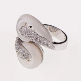 Пръстен от "Jacklin " в сребро с бял седеф и цирконии