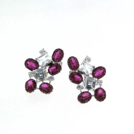 Обеци от "Jacklin " в жълто злато с рубин и диаманти