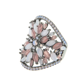 Пръстен от "Jacklin " в сребро с черен родий, лунен камък, опал и розов кварц