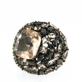 Пръстен от "Jacklin " в сребро с черен родий розов кварц, турмалин, перидот, планински кристал и цирконии