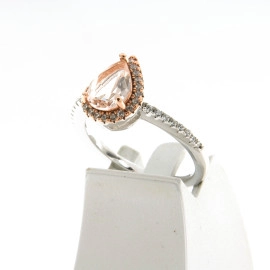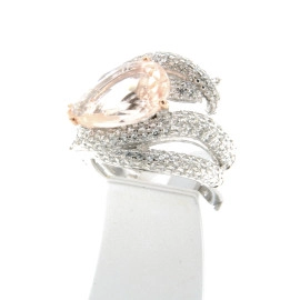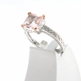 Пръстен от "Jacklin " в сребро с цирконии и бледо розов кварц