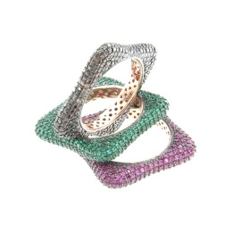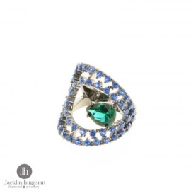 Пръстен от "Jacklin " в сребро с цирконии, тъмно син сапфир, черени оникси и зелен изумруд