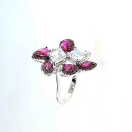 Пръстен от " Jacklin " сребро със синтетичен рубин и цирконии